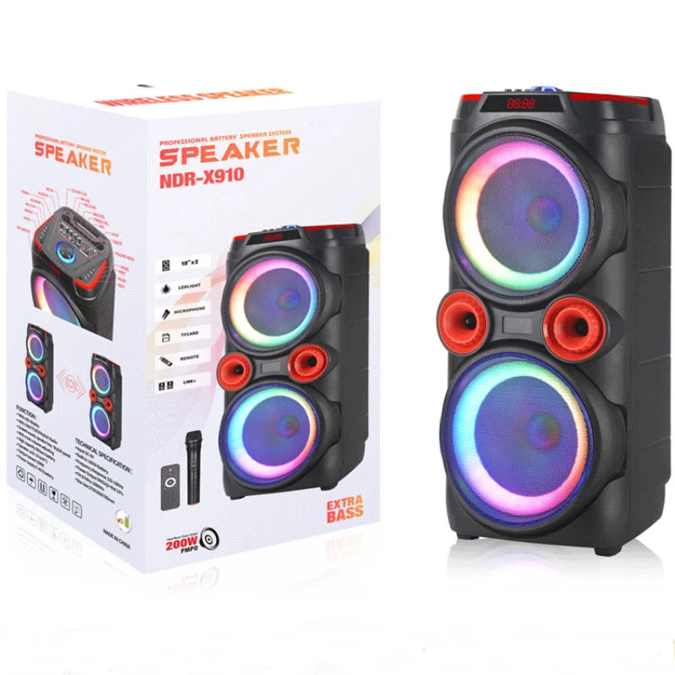 هم اکنون با هیولای شارژی رو برو هستید.توسط اسپیکر و پارتی باکس قدرتمند و قابل حمل NDR X910 می توانید مهمانی را با صدای قدرتمند و نمایش نور پویا و تمام عیار شروع کنید. این دستگاه ، با صدای قدرتمند و باس عمیق همراه با ولوم اکو و دیلی ، برای هر مهمانی، محتوای جدیدی به ارمغان می آورد. همچنین مجموعه ای از فن آوری های پیشرفته مانند بلوتوث را در خود دارد. استفاده از میکروفون اسپیکر جهت آواز. پشتیبانی USB، AUX، رادیو ، HD Sounds ، تکنولوژی میک پری و... از جذابیت های دیگر این اسپیکر می باشد.یکی دیگر از قابلیت های ویژه این اسپیکر مجهز بودنن به سیستم ضبط صدای خواننده بر روی فلش می باشد.