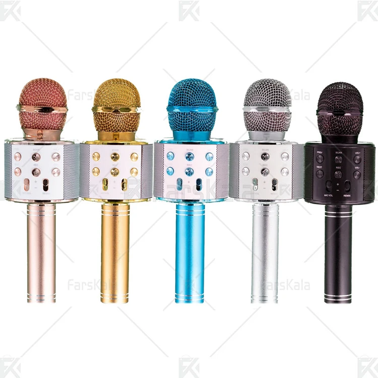 دکمه های روی بدنه میکروفون اسپیکر بر روی بدنه میکروفن اسپیکری WS858 دکمه های تنظیم صدا و دکمه های تغییر آهنگ ازجمله دکمههایVOL+NEXT_PREV+MIC+SCAN+REMIX+REC و MIC VOL وجود دارد که کار کردن با این دستگاه را برای ما راحت می کند. میکال استور به شما اطمینان میدهد که یک محصول عالی رو استفاده خواهید کرد، از قابلیت های بسیار جالب این دستگاه این است:در زمانیکه گوشی روی دوربین باشد میتوانید با فشردن دکمه تغییر آهنگ آن اقدام به گرفتن عکس سلفی کنید که مانند یک ریموت بلوتوثی عمل میکند.همچنین این اسپیکر در شیش رنگ مختلف عرضه شده و به صورت تصادفی ارسال خواهد شد.
