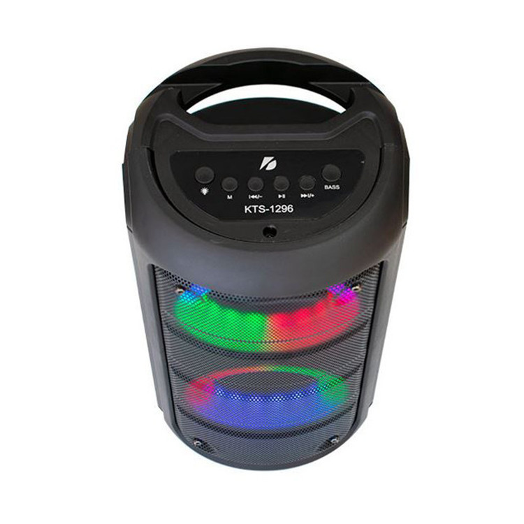 اسپیکر شارژی مدل kts 1296 یک دستگاه صوتی است که با قابلیت اتصال به دستگاههای مختلف از طریق تکنولوژی بلوتوث، امکان پخش موسیقی و صداهای مختلف را فراهم میکند. این اسپیکر دارای طراحی قابل حمل است که برای استفاده در مکانهای مختلف و همراهی در سفرها و مهمانی ها یا جلسات جمعی بسیار مناسب است. ویژگیهای اساسی اسپیکر شامل کیفیت صدای بالا، قدرت خروجی صوتی بالا، قابلیت اتصال به دستگاههای مختلف از جمله گوشیهای هوشمند، تبلت، لپتاپها و دیگر دستگاههای دارای قابلیت بلوتوث خواهد بود. همچنین، این اسپیکر دارای ورودیهای صوتی مختلف یا کارت حافظه است و قابلیت اتصال میکروفون به دستگاه وجود دارد . این دستگاه دارای پارتی لایت (رقص نور) جذابی می باشد که جلوه بسیار زیبایی را به محیط خواهد داد. بر روی برخی از این اسپیکرها میکروفن بی سیم یا با سیم قابل عرضه می باشد .