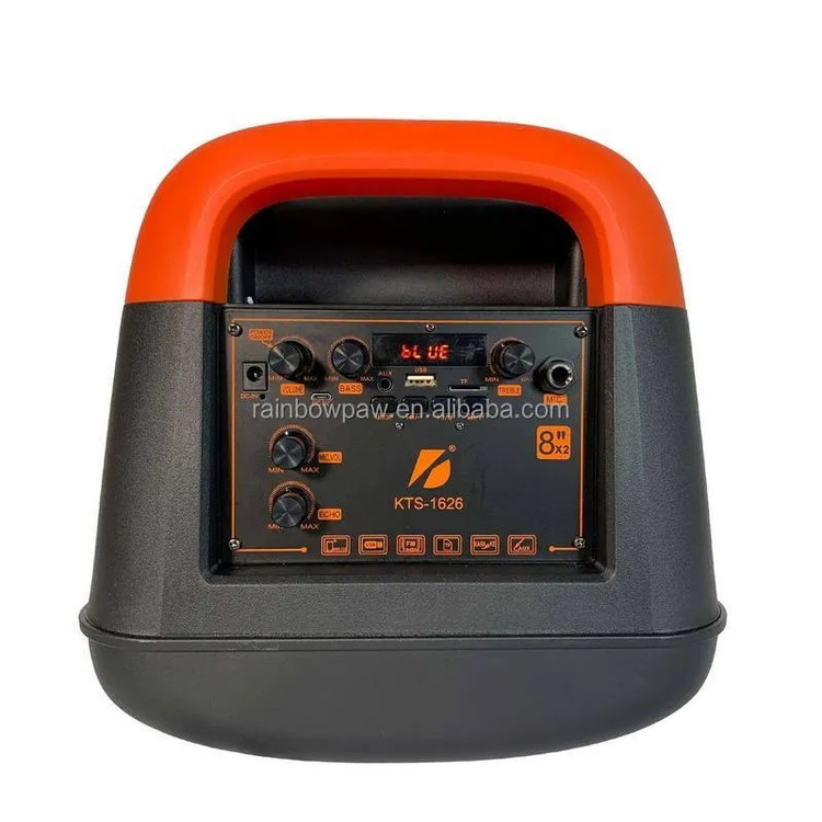 اسپیکر شارژی مدل kts 1626 یک دستگاه صوتی است که با قابلیت اتصال به دستگاههای مختلف از طریق تکنولوژی بلوتوث، امکان پخش موسیقی و صداهای مختلف را فراهم میکند. این اسپیکر دارای طراحی قابل حمل است که برای استفاده در مکانهای مختلف و همراهی در سفرها و مهمانی ها یا جلسات جمعی بسیار مناسب است. ویژگیهای اساسی اسپیکر شامل کیفیت صدای بالا، قدرت خروجی صوتی بالا، قابلیت اتصال به دستگاههای مختلف از جمله گوشیهای هوشمند، تبلت، لپتاپها و دیگر دستگاههای دارای قابلیت بلوتوث خواهد بود. همچنین، این اسپیکر دارای ورودیهای صوتی مختلف یا کارت حافظه است و قابلیت اتصال میکروفون به دستگاه وجود دارد . این دستگاه دارای پارتی لایت (رقص نور) جذابی می باشد که جلوه بسیار زیبایی را به محیط خواهد داد. بر روی برخی از این اسپیکرها میکروفن بی سیم یا با سیم قابل عرضه می باشد