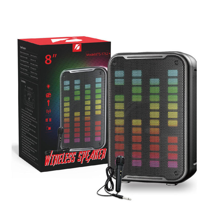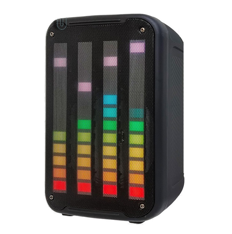 تامین انرژی توسط باتری داخلی با ظرفیت 1500 میلی آمپر ساعت، نگهداری شارژ در حدود 1 ساعت با میزان ولوم 75 درصدامکان شارژ مجدد از طریق درگاه میکرو یو اس بی و کابل همراه با ولتاژ شارژ 5 ولت در مدت زمان حدودی 3 الی 4 ساعتاتصال بی سیم از طریق بلوتوث با برد اتصال تقریبی 10 متر، دارای یک عدد درگاه ورودی میکروفون، دارای خروجی AUXپشتیبانی از فلش مموری USB و حافظه رم میکرو اس دی جهت پخش فایل های ذخیره شده تا حداکثر حجم 32 گیگابایت حساسیت سیگنال به نویز برابر با 85 دسی بل و میزان پاسخ فرکانسی در رنج داینامیکی 100 هرتز الی 20 کیلوهرتز متریال ساخت بدنه از جنس پلاستیک مقاوم در برابر آسیب های فیزیکی احتمالی همچون ضربه و فشار برخورداری از درایور 8 اینچ با توان خروجی کلی 10 وات، مجهز به دسته جهت حمل و جا به جایی آسان پشتیبانی از رادیو FM در بازه ی موج 87.5 الی 108.0 مگاهرتز برای دوستداران برنامه های رادیویی مجهز به فناوری TWS به منظور اتصال همزمان یک اسپیکر به دو یا چند اسپیکر هم مدل دیگردارای کلید های فیزیکی تعبیه شده بر روی بدنه به منظور تنظیم ولوم، تغییر Mode و ... مجهز به نورپردازی RGB در هنگام پخش موزیک به منظور ایجاد جلوه بصری زیبا اقلام همراه شامل یک عدد میکروفون و کابل شارژ میکرو